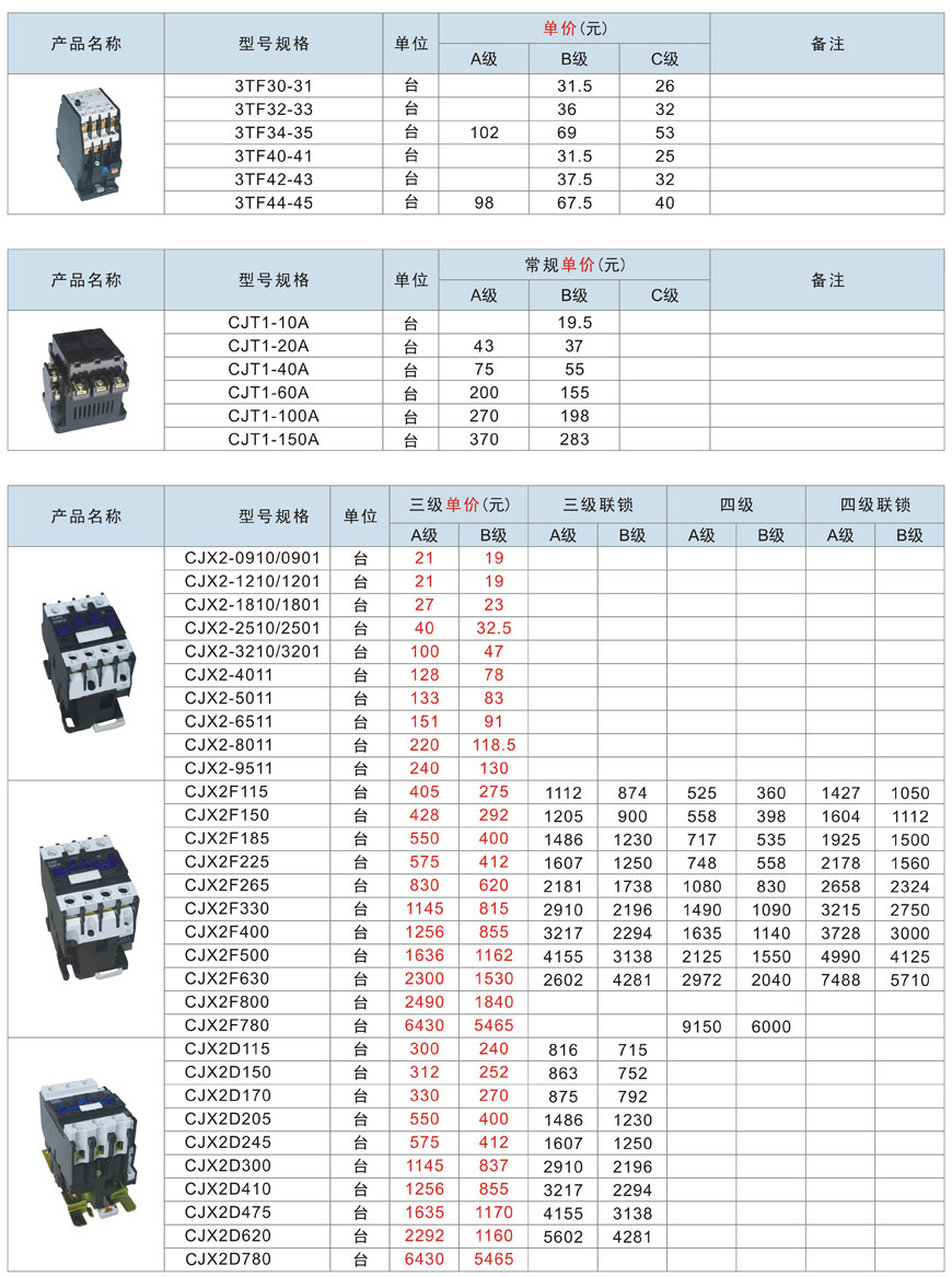 3TF、CJT1、CJX2、CJX2交流接觸器